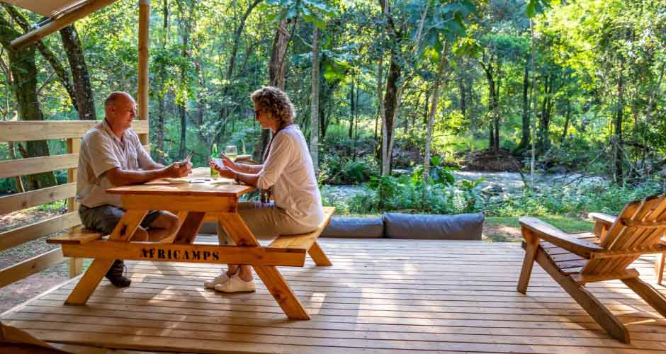 AfriCamps at Mackers is the perfect place to relax and explore when looking to spend some time in the Mpumalanga bush. Hear the nearby wild animals at night from the comfort of your luxury tent or walk a few meters over the soft grass to dip your toes into the river right in front of you. Spend some time in your own backyard taking a swim in the large swimming pool or taking a beautiful hike from your tent to admire the breath-taking scenery of waterfalls and wild rapids further up the river.