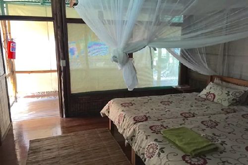 Separate annex has 3 bedrooms, each with 2 x single beds with mosquito nets. Each room has bathroom with shower, basin and toilet.