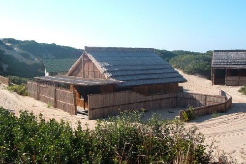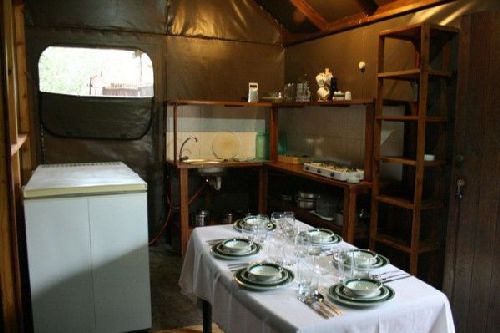 The Type A accommodation comprises either tented or wood ‘chalets’. All share a clean ablution block and are fully equipped for 5 guests. There are 2 separate bedrooms each with single beds and a single bed in the kitchen/lounge area. These chalets are behind a dune within walking distance from the beach and restaurant. They all have braai facilities.