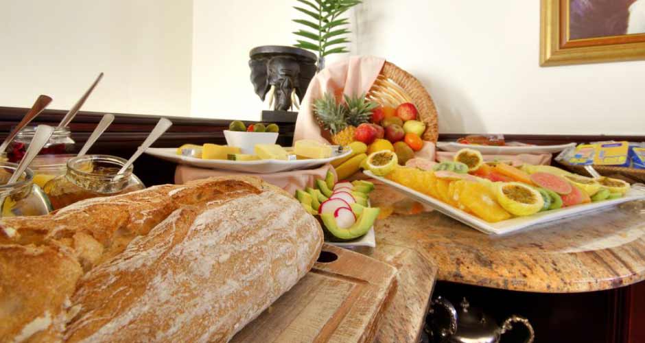 Indulge in a delicious breakfast, consisting of a selection of cooked foods, breads, pastries, cut seasonal fruit and freshly brewed coffee and teas while overlooking the garden.