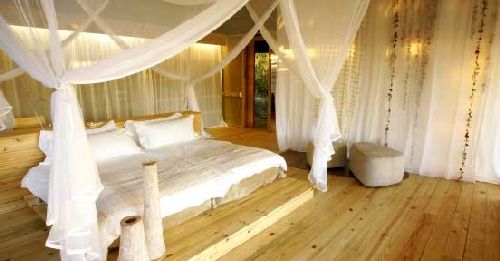 Vumbura Plains Camp comprises two separate seven-roomed satellite camps, each with its own raised dining, lounge and bar area tucked beneath a canopy of cool, shady, indigenous trees . Magnificent vistas across the Okavango Delta floodplains are a feature. A star-gazing deck with comfortable cushions protrudes into the floodplain, a place to gaze upwards, or a convivial camp fire setting. Vumbura Plains Camp is unlike any safari camp you will have seen before. Each large, luxurious room is raised off the ground on wooden decks and each comprises a bedroom, lounge, shower and full en-suite bathroom. Outdoor showers are standard. It is open on three sides, and the billowing curtains between the various areas create the sense of a yacht floating through the floodplains. Each room also has a plunge pool and 'sala' - a comfortable area to lie and relax, watching the waving grasses of the floodplain.Directions To Vumbura Plains Camp