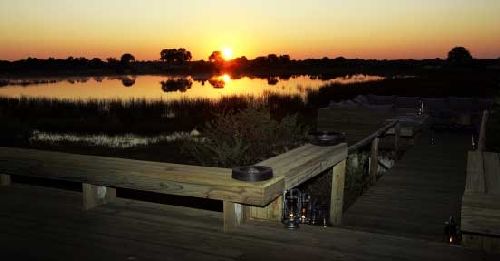 Vumbura Plains and Little Vumbura Camp are situated in the extreme north of the Okavango Delta in what is known locally as the Kwedi Reserve. Here the vegetation ranges from open floodplains to dense mopane bushveld - offering spectacular game viewing and birding opportunities all year round.The permanent swamp and island habitats abound with beautiful treed islands of every size, surrounded by permanent waterways created both by the summer rains and the annual winter floodwaters of the Okavango Delta. Common trees found around Vumbura Plains Camp are the jackalberry, African mangosteen and the ubiquitous sausage tree, which provide shade food and shelter to a fantastic range of wildlife. Game drives in this region are incredibly productive, arriving guests often sighting their first game on the trip from airstrip to camp. The annually flooded grasslands of the Okavango Delta surrounding Vumbura Plains Camp are locally referred to as 'melapo' and offer seasonal viewing of elephant, giraffe, impala, sable antelope, kudu, zebra, common waterbuck and reedbuck, tsessebe, wildebeest, red lechwe and Cape buffalo. Encounters with hippo and crocodile are common in the waterways. Predators include the African Wild Dog, several resident prides of lion, leopard, cheetah and the African wildcat. The birding around Vumbura Plains Camp is as varied as it is exceptional all year round. In the summer many migrant species are present. Pel's Fishing Owl is regularly seen, with other specials including Wattled Crane, Slaty Egret, Chirping Cisticola, Little Bee-eater, Fan-tailed Widowbird and possibly Rosy-throated Longclaw.Vumbura Plains Camp - Botswana Okavango Delta Accommodation